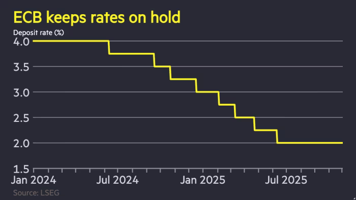 ECB holds interest rates at 2% Unlock the Editor’s Digest for free Roula Khalaf, Editor of the FT, selects her favourite… October 30, 2025